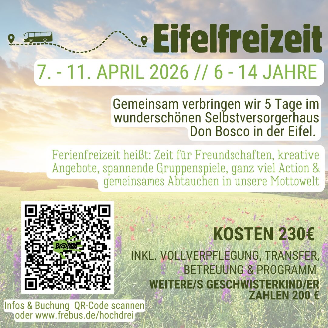 Alle Angebote werden sich an einem Motto orientieren – seid gespannt, welches Motto das Team diesmal vorbereitet. Zur Eifelfreizeit können sich Kids und Teens von 6 bis 14 Jahren anmelden.